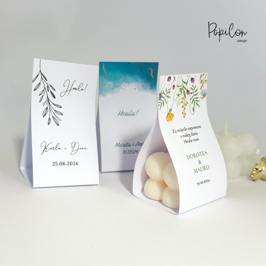 Papilon Design je dizajnersko-tiskarski studio specijaliziran za izradu personaliziranih pozivnica za vjenčanja. Nudimo širok izbor dizajna koji odražavaju osobnost i stil svakog para. Uz pozivnice, u ponudi imamo i razne druge tiskane materijale poput zahvalnica, brojeva za stolove, kartica, etiketa, jelovnika i postera.