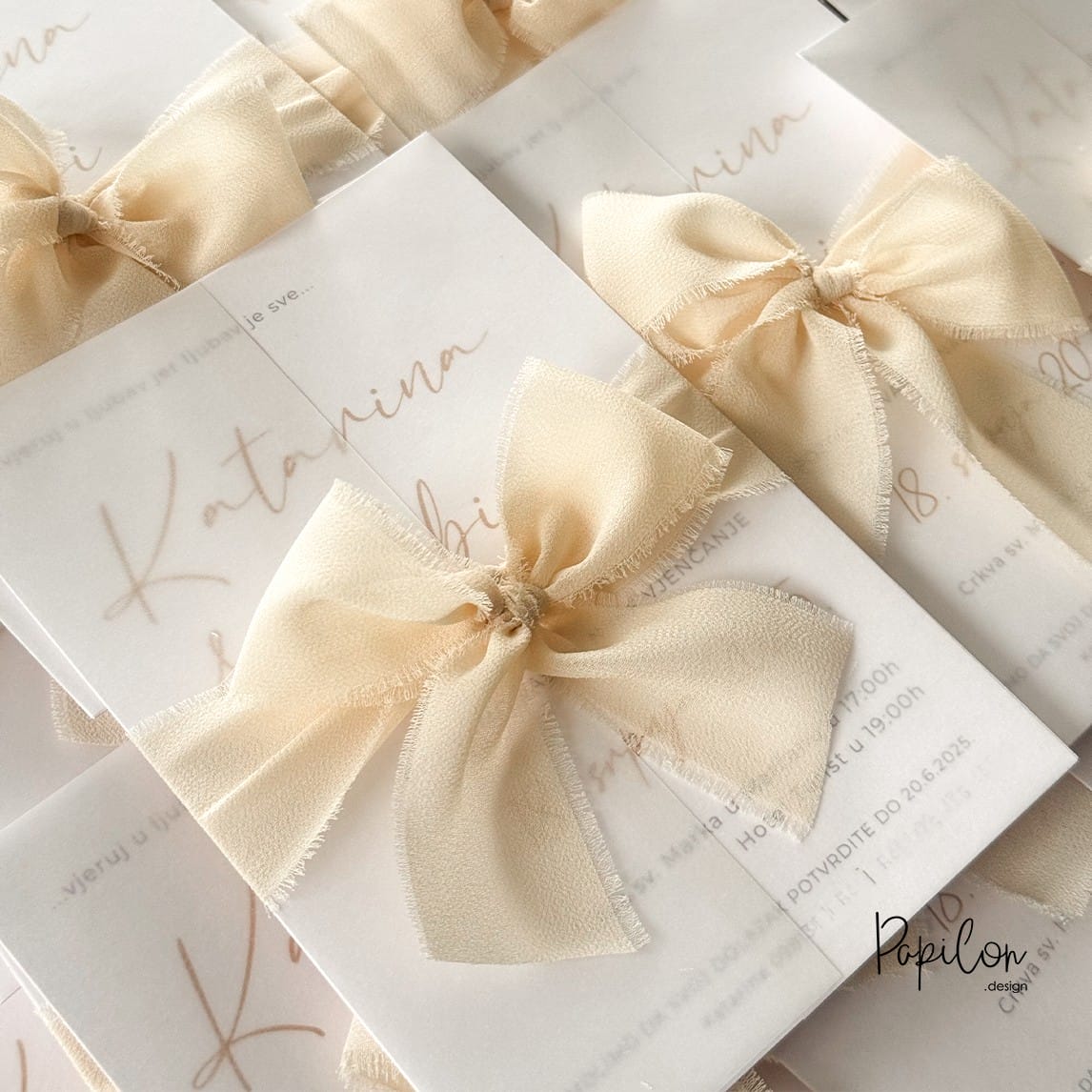 Papilon Design je dizajnersko-tiskarski studio specijaliziran za izradu personaliziranih pozivnica za vjenčanja. Nudimo širok izbor dizajna koji odražavaju osobnost i stil svakog para. Uz pozivnice, u ponudi imamo i razne druge tiskane materijale poput zahvalnica, brojeva za stolove, kartica, etiketa, jelovnika i postera.