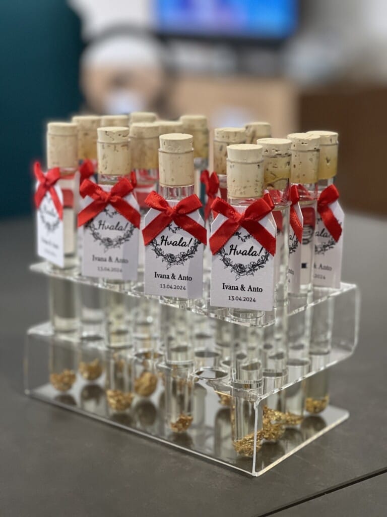 Pokažite svoju kreativnost, naručite prazne epruvete i čepove te sami izradite pozivnice i zahvalnice ili prepustite sve nama. Naš kreativni tim rado će ispuniti svaku vašu želju.